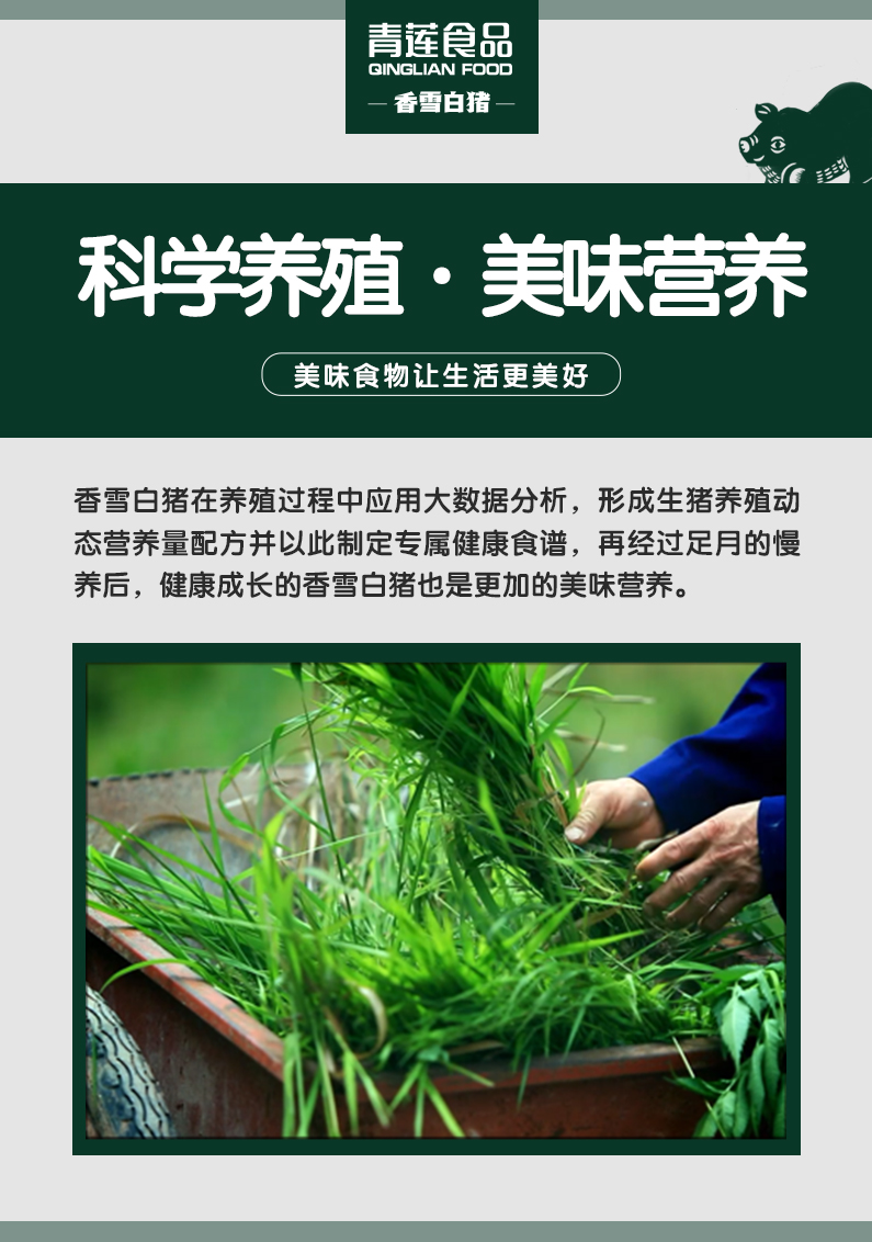 香雪白豬抗病力強(qiáng),在飼養(yǎng)過程中全程無需使用任何抗生素、化學(xué)藥物、生長激素等。全程無抗飼養(yǎng)而成的香雪白豬,生鮮肉品品質(zhì)更安心。